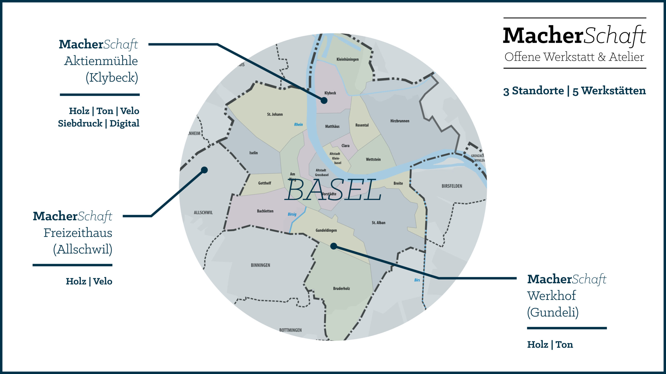 Die MacherSchaft betreibt heute eine Holzwerkstatt, eine Velowerkstatt, ein Tonatelier/Töpferei, ein Siebdruckatelier sowie eine Digitalwerkstatt an drei Standorten: